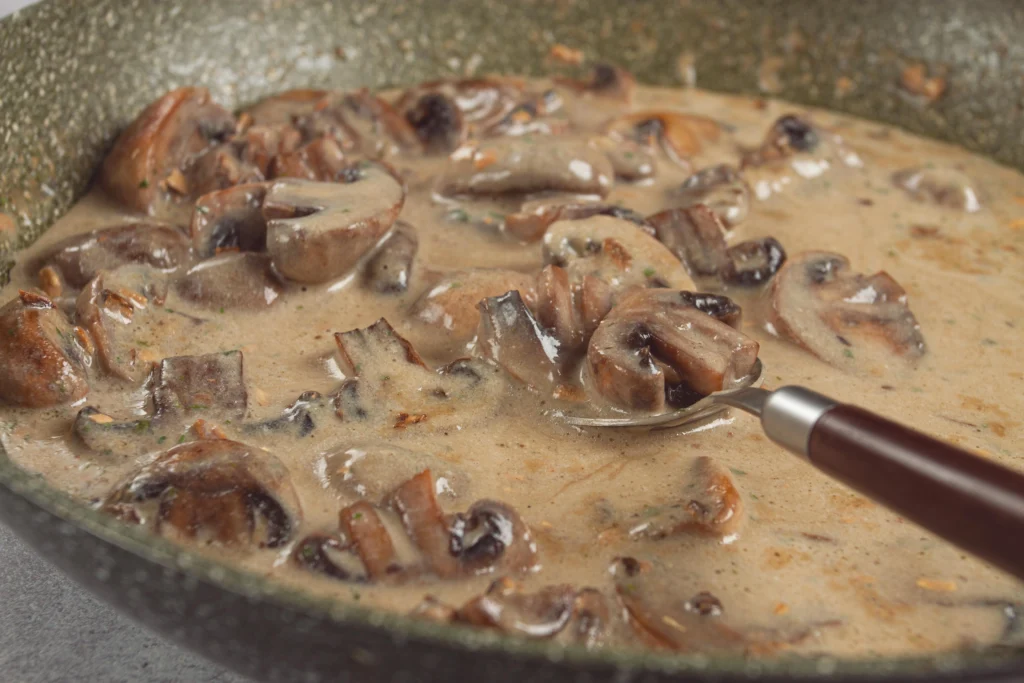- Turn off the heat. Stir in the sour cream at the end to keep the sauce smooth.