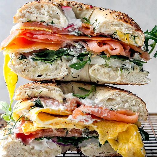 - Rich flavor balance. The smoky salmon, sharp cheddar, fresh vegetables, and crisp bread create contrast in every bite.